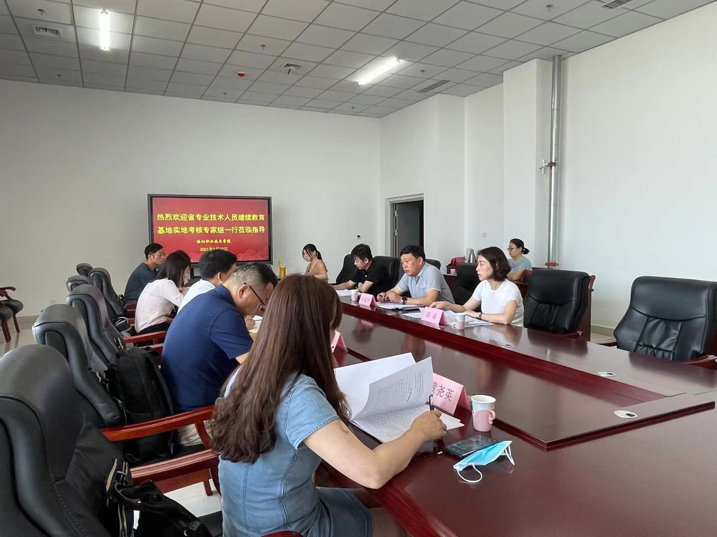 汇报会上,介建中代表学院致欢迎词,详细介绍了我校的基本情况,苏萌对照基地考核要点对我校专业技术人员继续教育基地建设情况作了专题汇报。考核验收专家组通过听取汇报、查阅资料、技术抽查、访谈咨询、质询答辩等方式,对我校河南省专业技术人员继续教育基地的制度建设、场地设施、开展培训情况、信息化建设、网络安全防护情况等考核项目逐一进行了认真的检查测评。