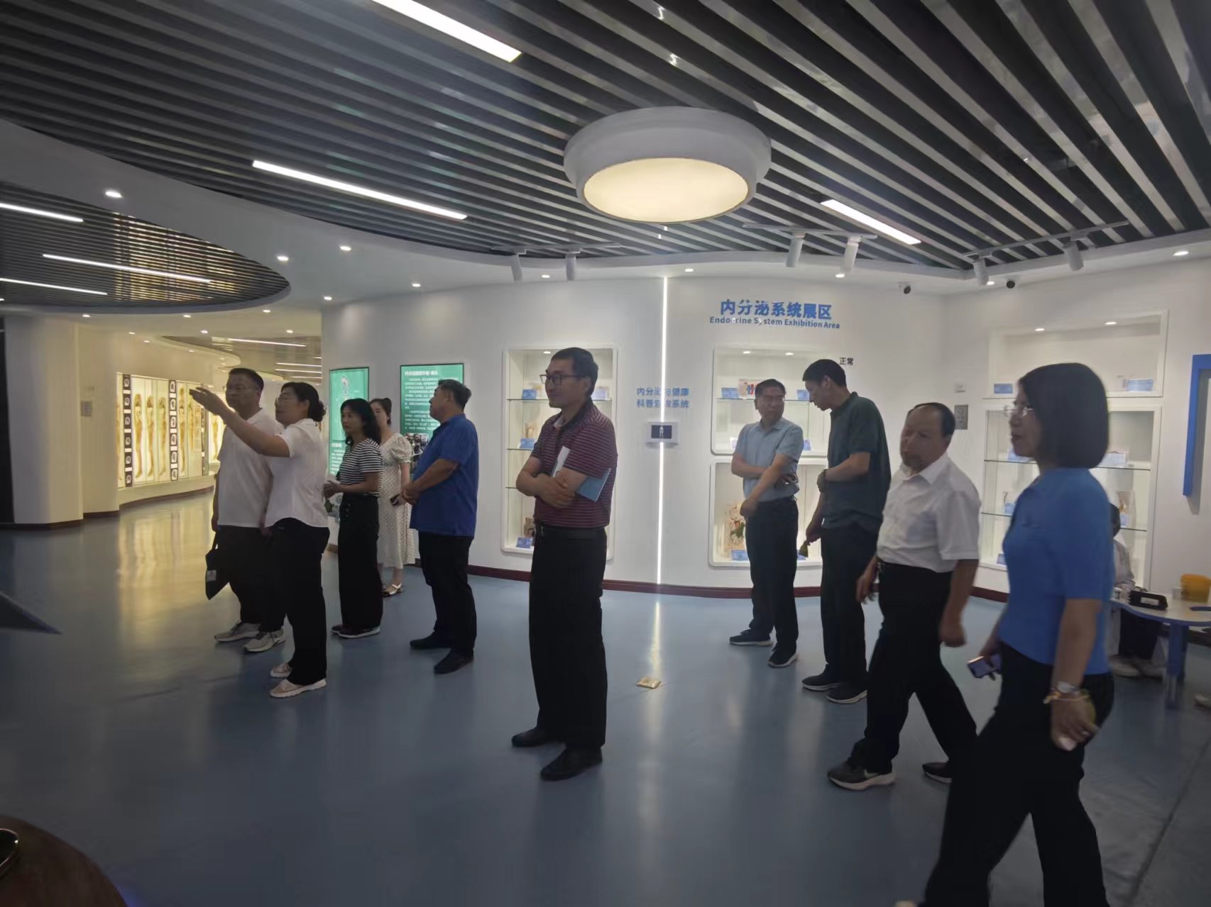 专家组首先进入生命科学与健康教育馆查看设施、查阅资料,实地评估,该馆以“探寻进化证据、揭示生命奥秘、传播健康知识”为三大主线,整体布局分为南、北两个展馆,包括序厅、地球(生命家园)、生物进化历程、人类进化历程、现代生物多样性、中草药辨认采摘区、人体奥秘、临床应用八大主题展厅。专家组在馆内进行互动体验,深入了解了人体各系统的结构和功能,通过VR技术,在虚拟空间畅游在人体的“血管”、“肺泡”、“肠道”,参与各种体感互动游戏,现场观看海姆利克急救法、心肺复苏急救法等各类演示活动,对生命科学与健康教育馆的社会科普意义给与高度评价。