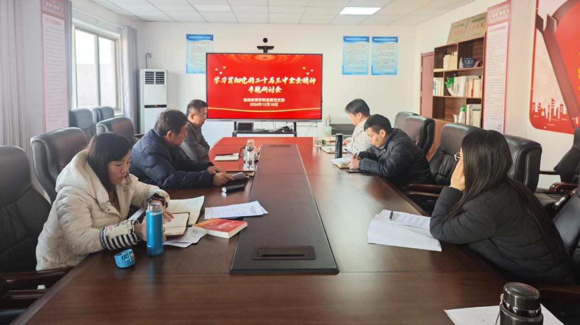 12月16日上午,继续教育学院直属党支部组织开展学习贯彻党的二十届三中全会精神交流研讨会,副科级以上干部、党员全员参与,会议由支部书记长宋来炜主持。